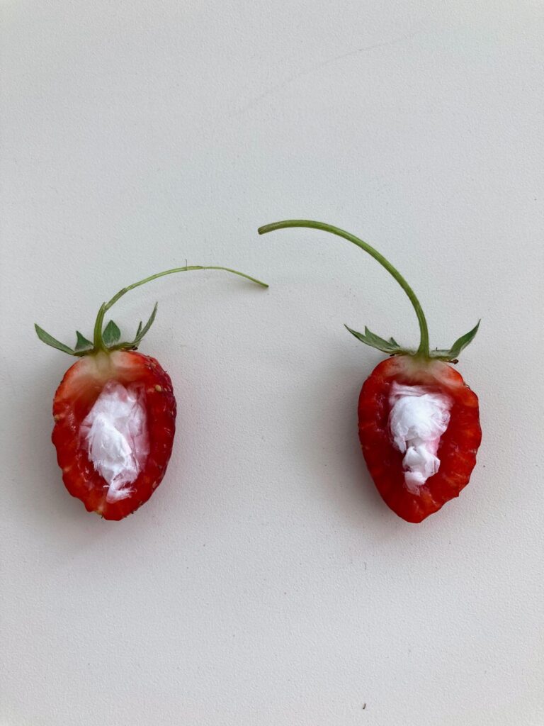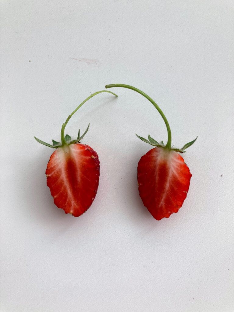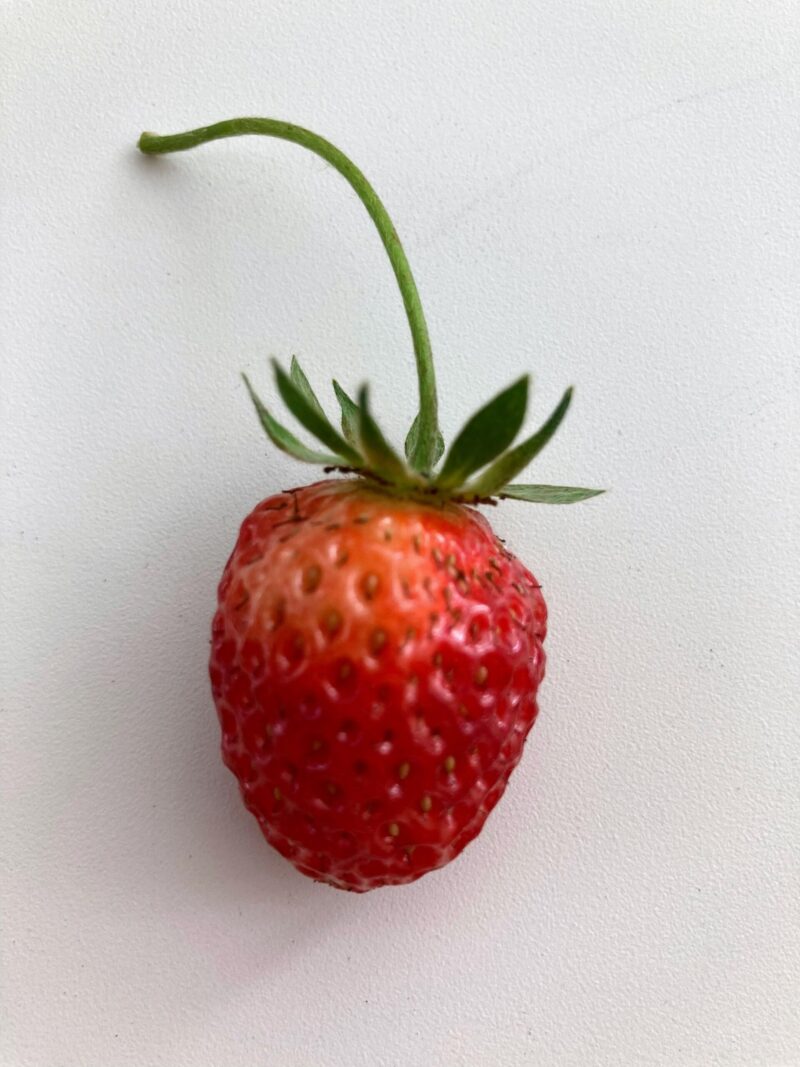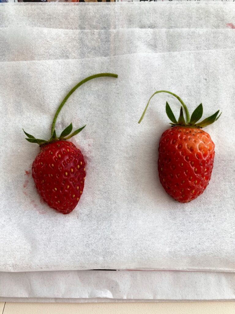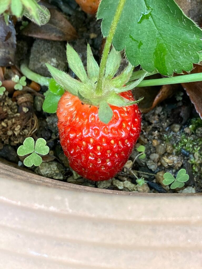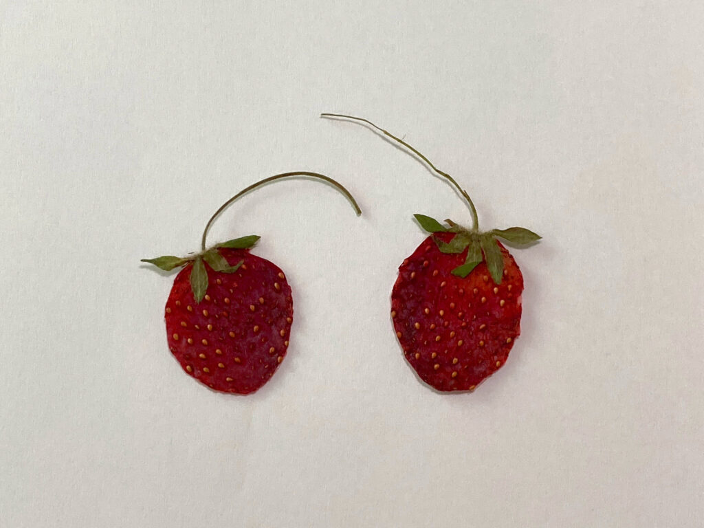 おねぎや三つ葉など食用のものばかりごちゃごちゃ植えている鉢に観賞用の小さないちごが実ったので押し花にしました。