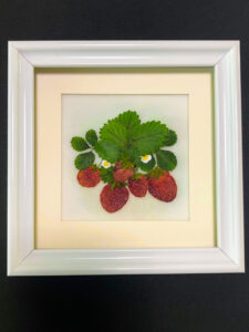 5月頃に押し花にしておいたいちごをフレームにいれてみました。 小さな小さなフレームです。(16正方額) スタンドタイプなので飾りやすいです。