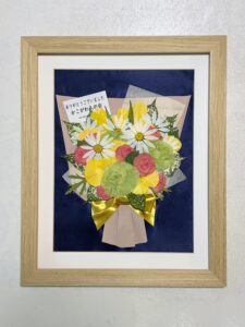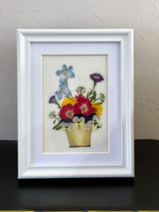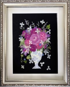 シルバーのフラワーベースが、より一層華やかさを引き立てています。