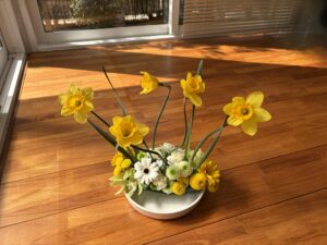 ゆらりゆらりと揺れる水仙 2026年3月5日 最終更新日時 : 2026年3月5日 atelier-with アレンジメントフラワーを楽しんできました。 テーマは「動きのあるデザイン」。野に咲く水仙が風にゆらり、ゆらりと揺れる姿を思い浮かべながら、そっと挿し進めました。大きな水仙は、光の中でおしゃべりしているようです😊